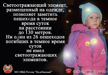 В настоящее время, по причине с возобновления очного образовательного процесса, значительно возросло число несовершеннолетних, участвующих в дорожном движении в качестве пешеходов. Кроме того, в связи с наступлением осеннего периода, происходит постепенное сокращение светлого времени суток, что также увеличивает риск наездов на пешеходов. При этом подавляющее количество пешеходов не имеют на одежде светоотражающих элементов.